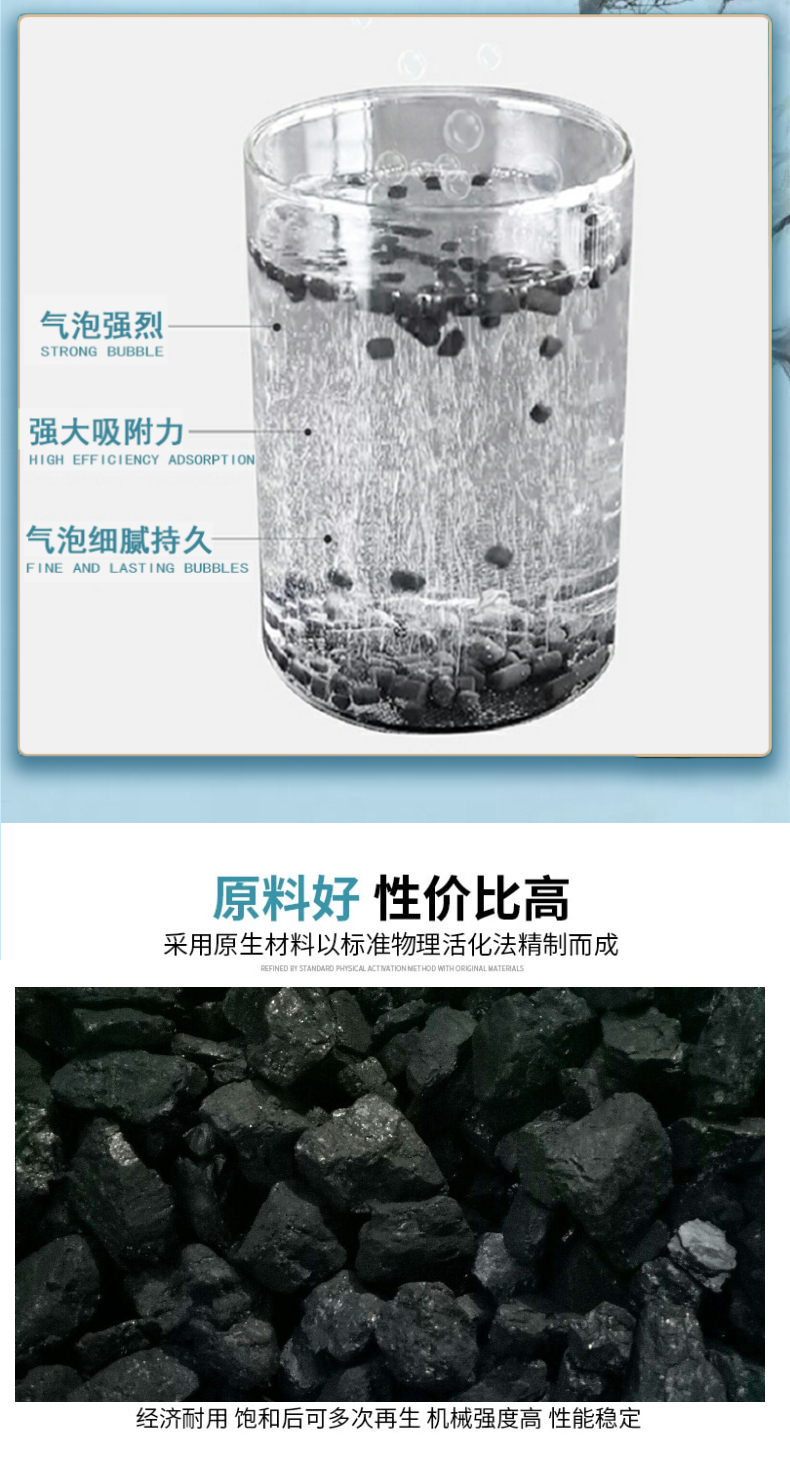四、顆粒炭和粉狀炭作用相同,但顆粒炭不易流失所以容易再生重復使用,相對粉狀活性炭來說顆粒炭更適合用于污染較輕、需連續運行的水處理工藝,但是粉狀炭目前不易回收所以一般為一次性使用,相對于顆粒活性炭它更適用于間歇地污染較重的水處理工藝。