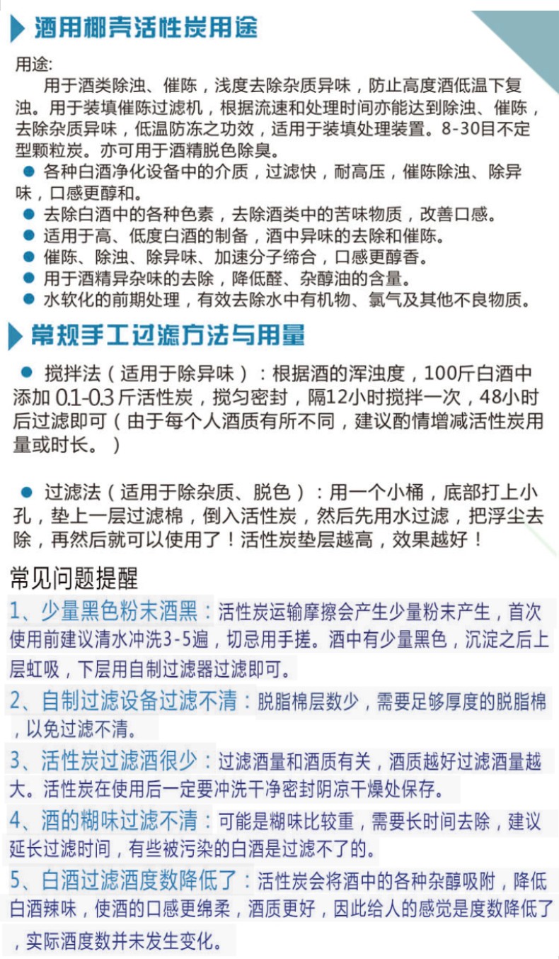 酒用活性炭的用法和用量