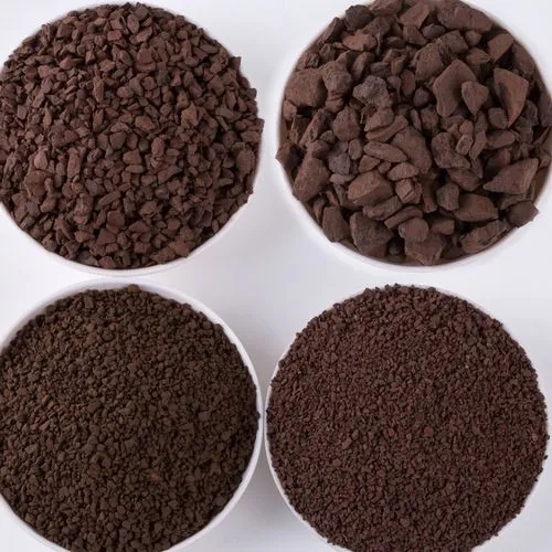 采用天然錳礦石經機械破碎、水洗、多次篩分加工而成。外觀呈褐色,表面粗糙。錳砂密度大、硬度高、不易磨損與破碎、化學性能穩定、不含有毒物質,是一種很強的氧化劑。