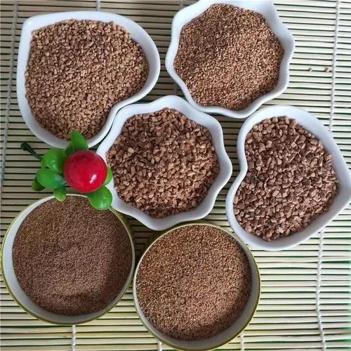 果殼濾料采用植物果殼為原料,經破碎、拋光、蒸洗、藥物處理和多次篩選加工而成。可采用的植物果殼有核桃殼、椰子殼等。果殼濾料具有耐磨、抗壓、不在酸堿性水中溶解、不腐爛、不結塊、易再生,較強的除油性能等優點,被廣泛運用在各種廢水處理(特別是含油廢水)中。果殼濾料是取代石英砂濾料來提高水質、大幅度降低水處理成本的新一代濾料。